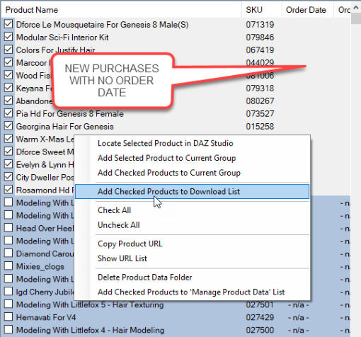 “Add Checked Products to Download List” from the Context Menu.