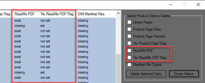 The Product Data Manager has likewise been updated to include the ReadMe PDF and -flag files: