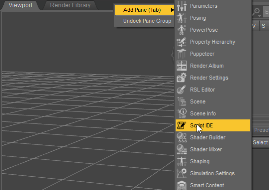 The workaround involves the Script IDE which must be enabled. To enable it, right click a Pane Group,