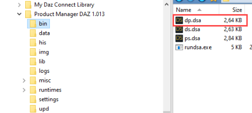 window, and click on a path in the left pane. You should now see a file “dp.dsa” in the DAZ Product