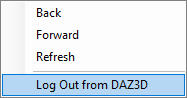 and select “Log Out from DAZ3D” from the context menu: