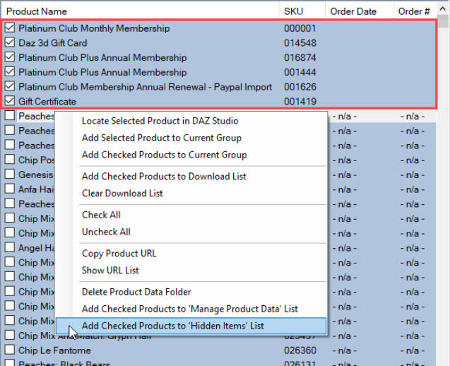 3. right click anywhere on the list to open the context menu, and select Add Checked Products to