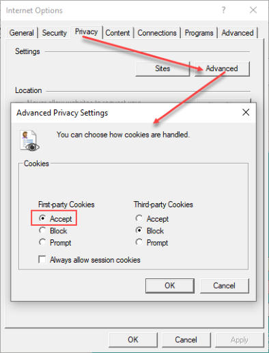 Explorer) on your system is blocking First-party Cookies (the browser is a clone of the IE on your